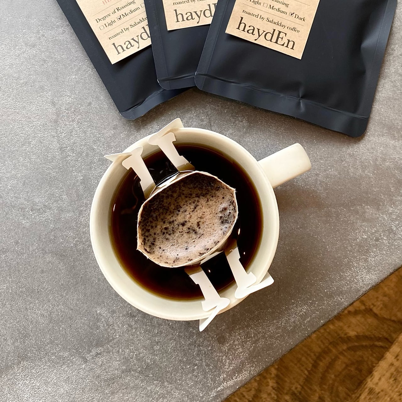 ドリップバッグをカップにセットしてお湯を注ぐだけで簡単に美味しいコーヒーをお楽しみいただけます。